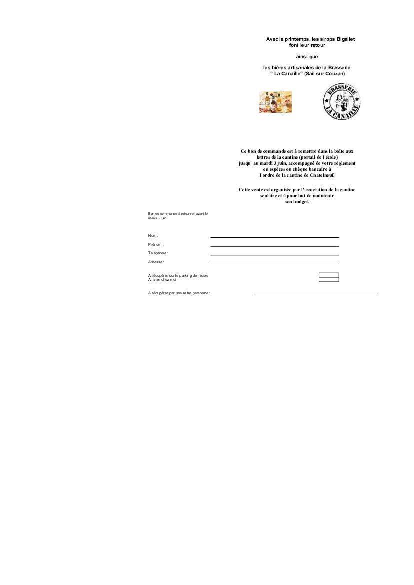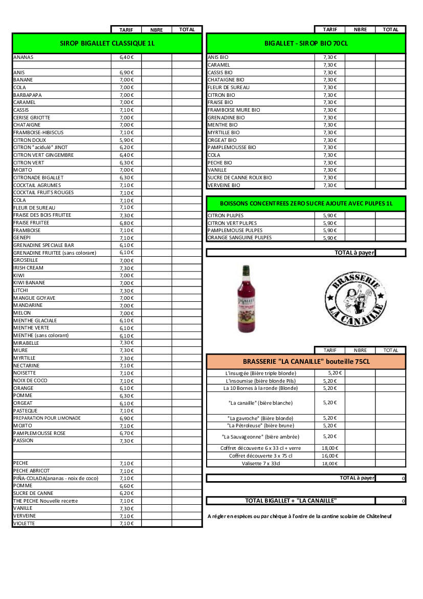 L'association cantine lance sa vente de sirops BIGALLET et bières LA CANAILLE
