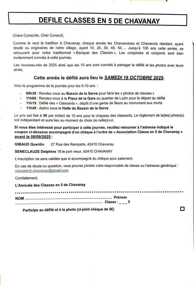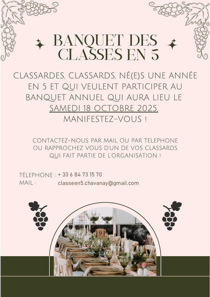 Le banquet des classes en 5 de Chavanay aura lieu cette année le samedi 18 octobre.