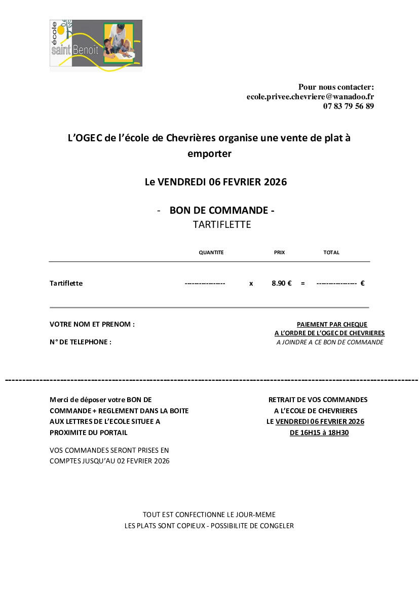 🍽️ Vente de plats à emporter – École de Chevrières 🥘