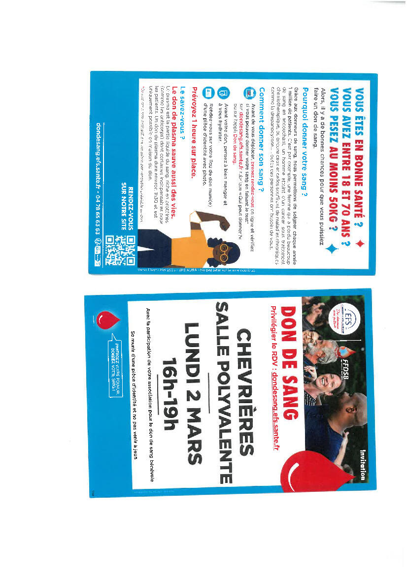Don du sang le Vendredi 12 décembre 2025 salle du Pré'O