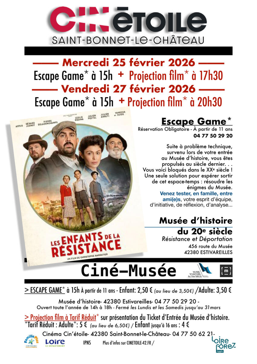 Animations Musée Février 29/1/26 Avec en avant-première le film "Les enfants de la résistance" le 1er Février.