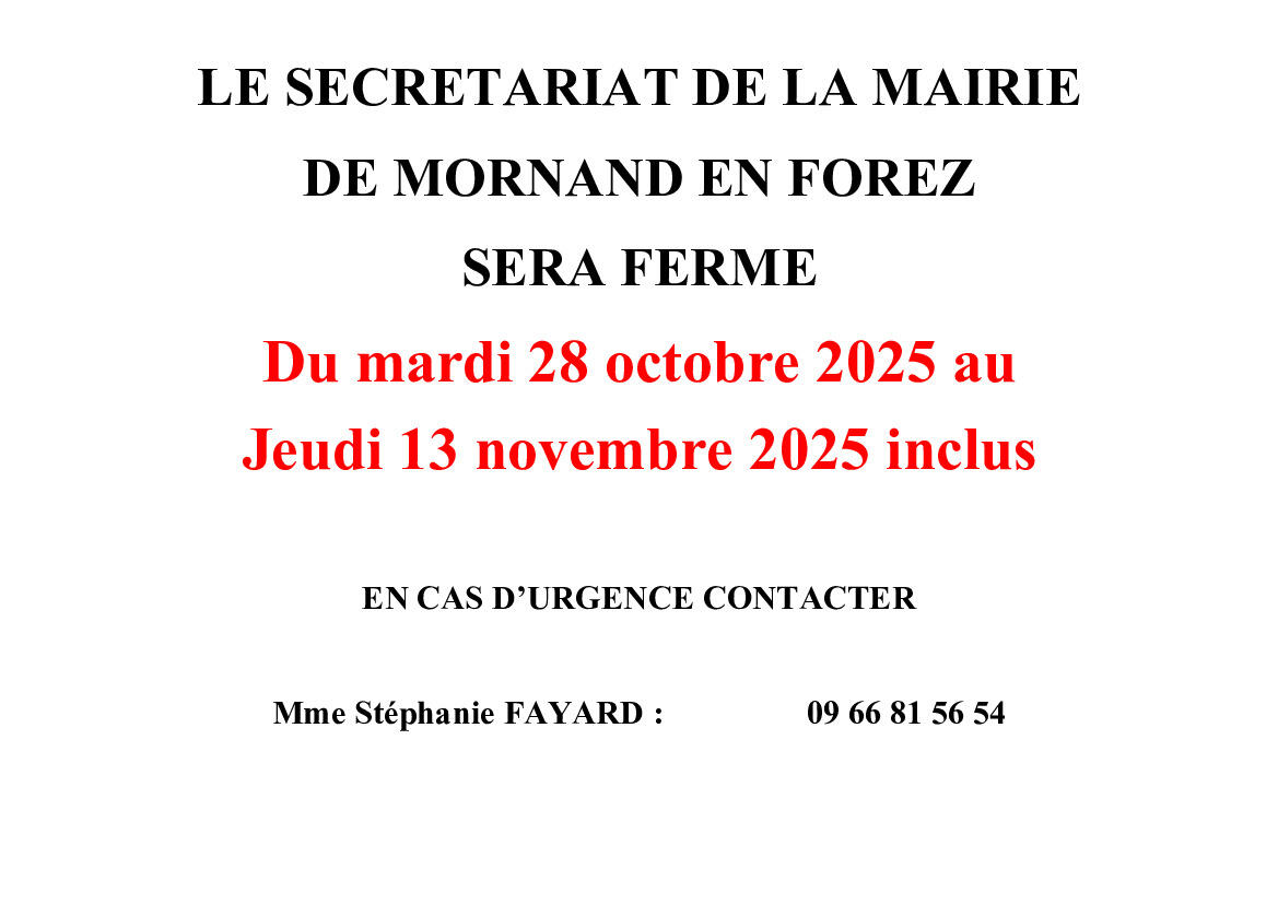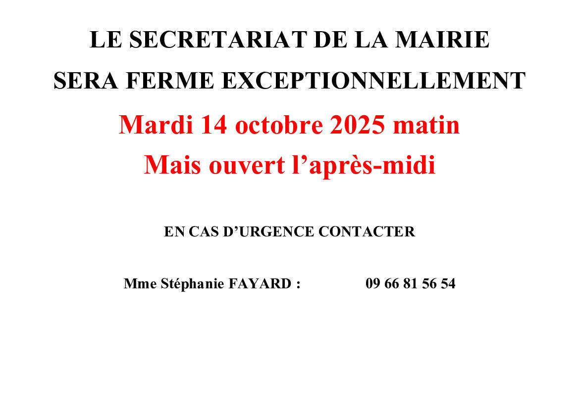 FERMETURE EXCEPTIONNELLE DU SECRETARIAT DE MAIRIE