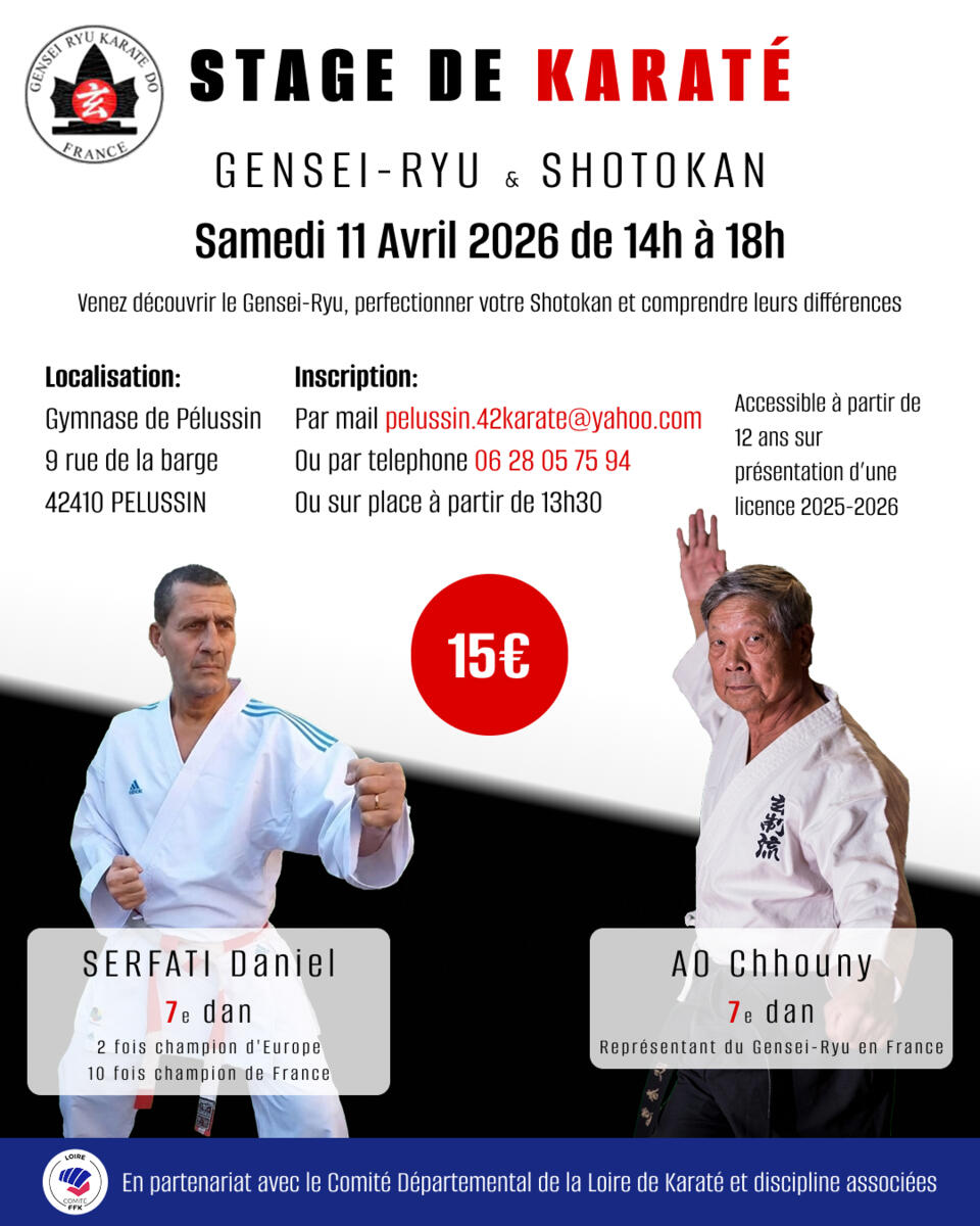 Informations et inscriptions : 06 28 05 75 94 / pelussin.42karate@yahoo.com