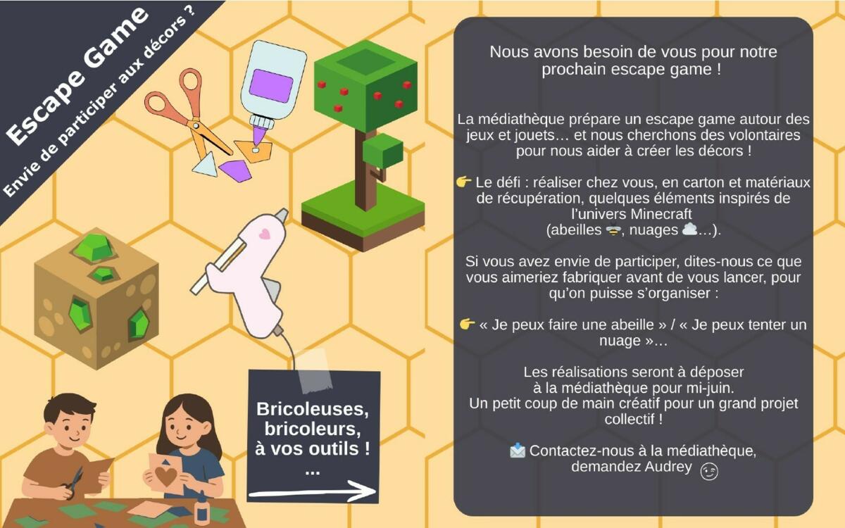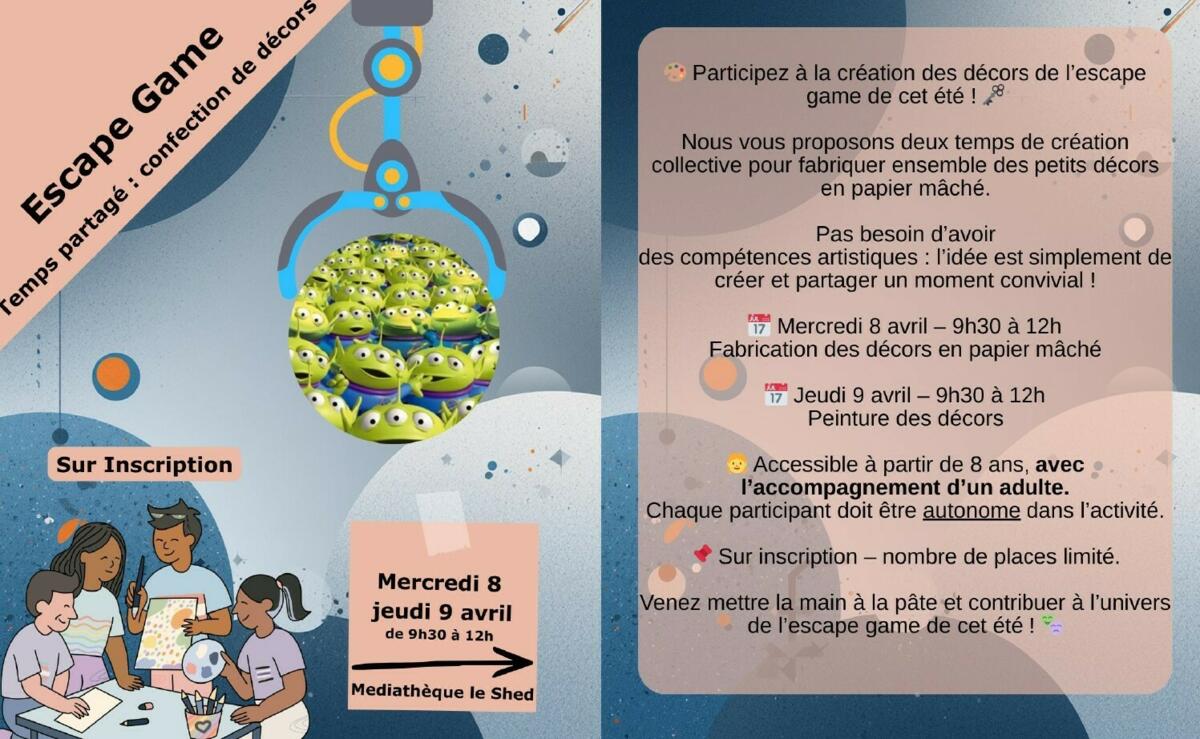 Participer à la création des décors du prochain escape game !! Accessible à partir de 8 ans avec l’accompagnement d’un adulte. Sur inscription