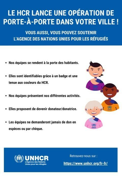 En vertu de la loi N°91-772 du 7 août 1991 (art 3 alinéa 1), le HCR, l’Agence des Nations Unies pour les réfugiés a déclaré son intention d’entreprendre une campagne de sensibilisation en porte-à-porte à PÉLUSSIN du 10 novembre 2025 au 29 novembre 2025 à raison de 12 jours maximum durant cette période.