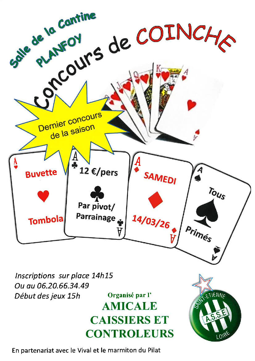 Concours de coinche le samedi 14 mars 2026 à 14h15