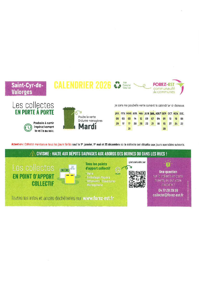 CALENDRIER 2026 - COLLECTES POUBELLES