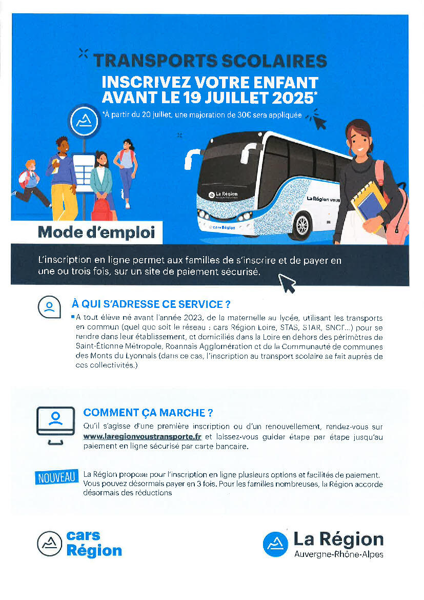 Su ayuntamiento / Noticias / INSCRIPTION TRANSPORTS SCOLAIRES RENTREE 2025-2026