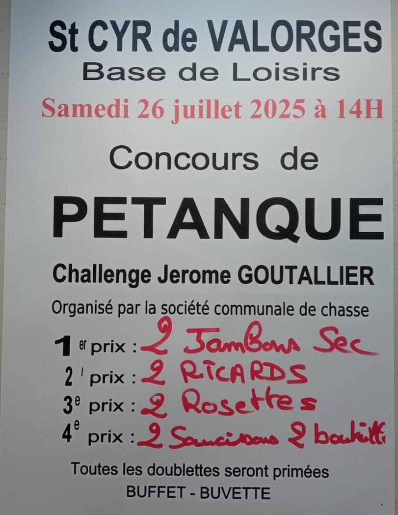 Samedi 26 Juillet concours de pétanque à la zone de loisirs , buffet,buvette, dégustation de tripes.