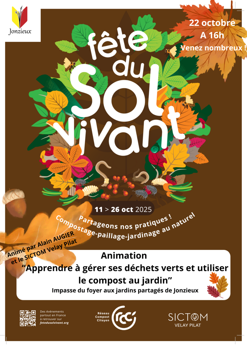 Le SICTOM Velay Pilat et la commune de Jonzieux organisent une formation mercredi 22 octobre à 16h00 aux jardins partagés de Jonzieux impasse du foyer à côté de la salle du Milleclub afin d’apprendre à gérer ses déchets verts au jardin plutôt que de se déplacer à la déchèterie et savoir utiliser son compost pour les plantations, les espaces verts.