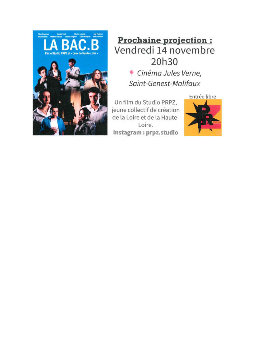 Projection du film du studio PRPZ , jeune collectif de création de la Loire et de la Haute-Loire au Cinéma Jules Verne de Saint-Genest-Malifaux