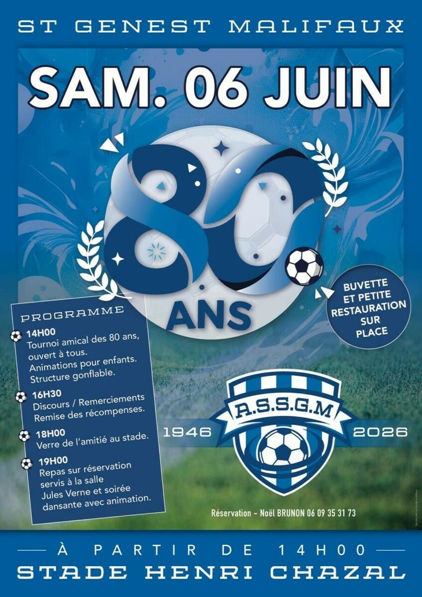 Samedi 6 juin : 80 ans de l'ASSGM 11/4/26 Réservation du repas pour la soirée dansante auprès de Noël Brunon : 06 09 35 31 73