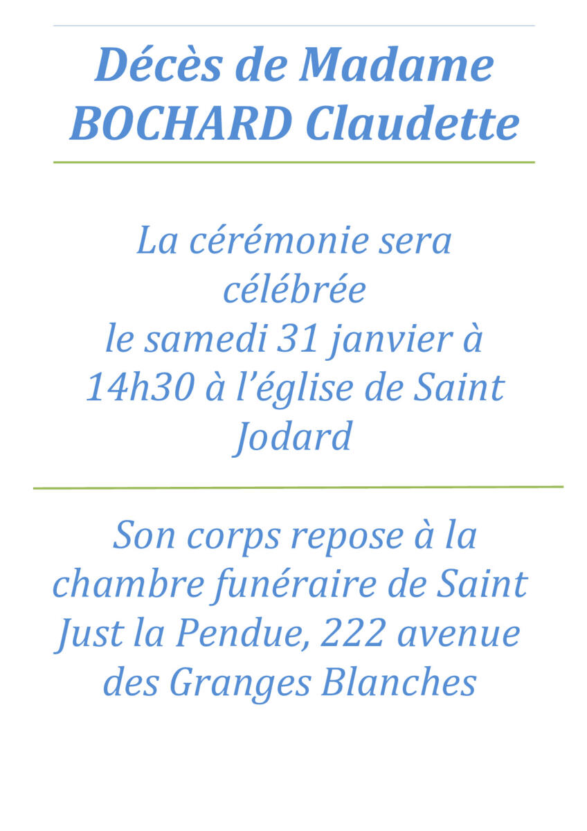 DECES MME BOCHARD CLAUDETTE