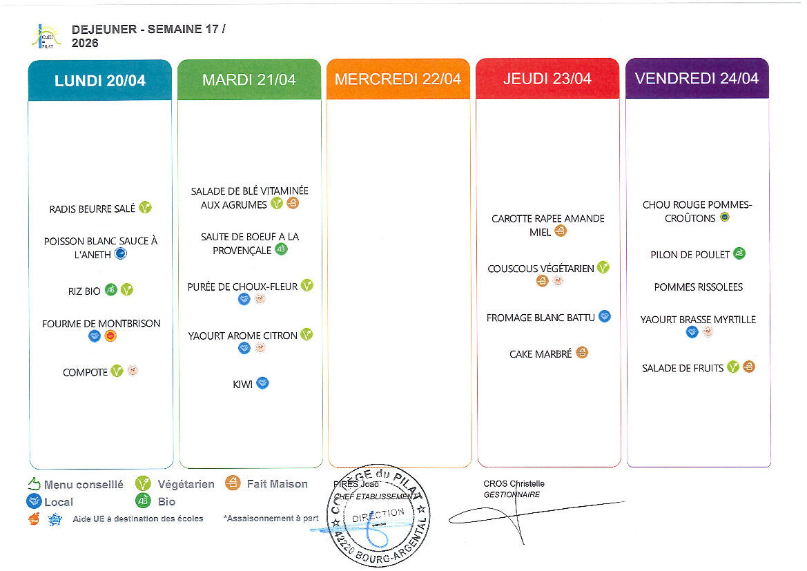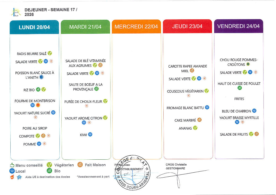 Menu du 20 au 24 avril