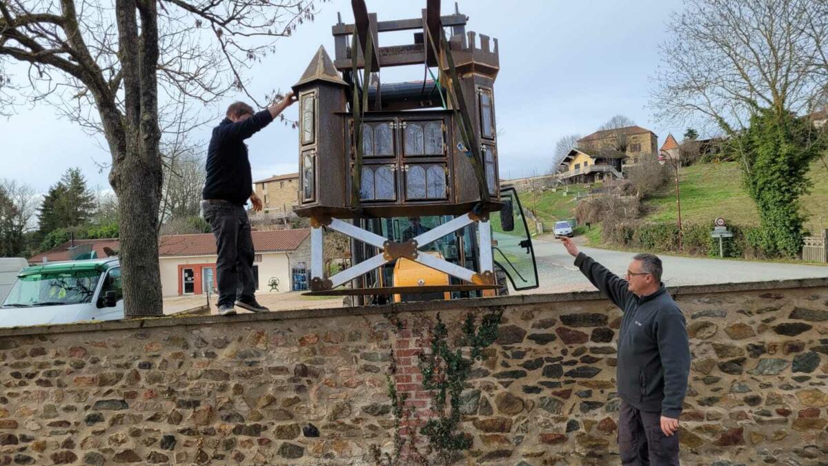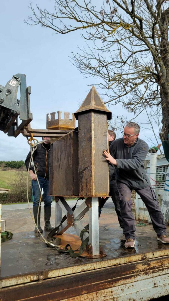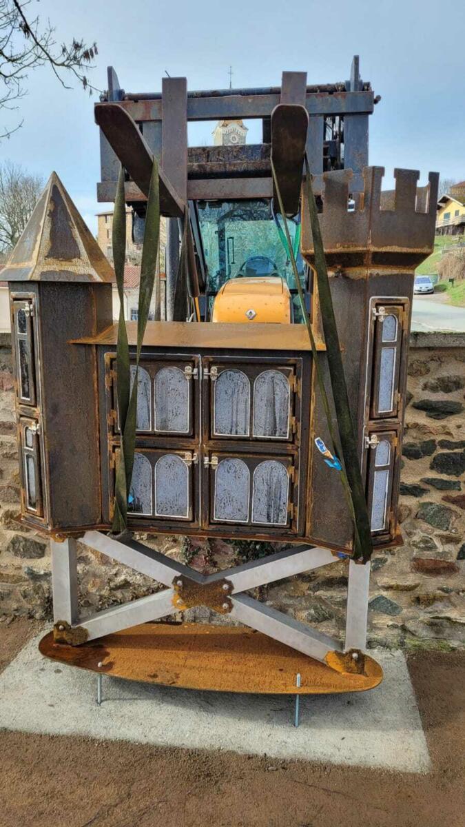 L'emplacement avait été préparé au préalable par les agents communaux afin d'accueillir cet ouvrage de 300kg, conçu par les élèves du Lycée professionnel Étienne Legrand au Coteau.