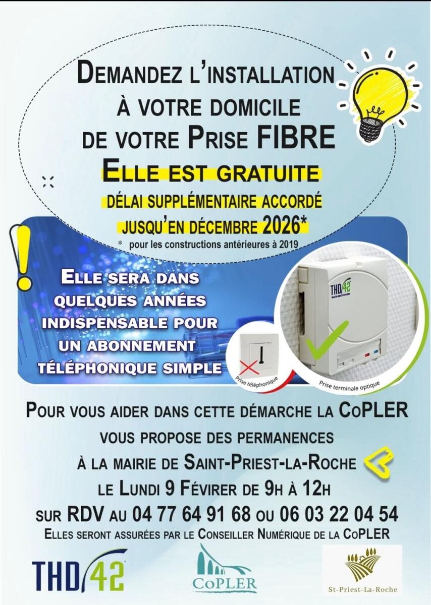 Permanence Fibre 4/2/26 🚨RAPPEL PERMANENCE FIBRE 🚨 📆 LUNDI 09 FÉVRIER 2026 DE 09H À 12H En mairie de Saint-Priest-la-roche