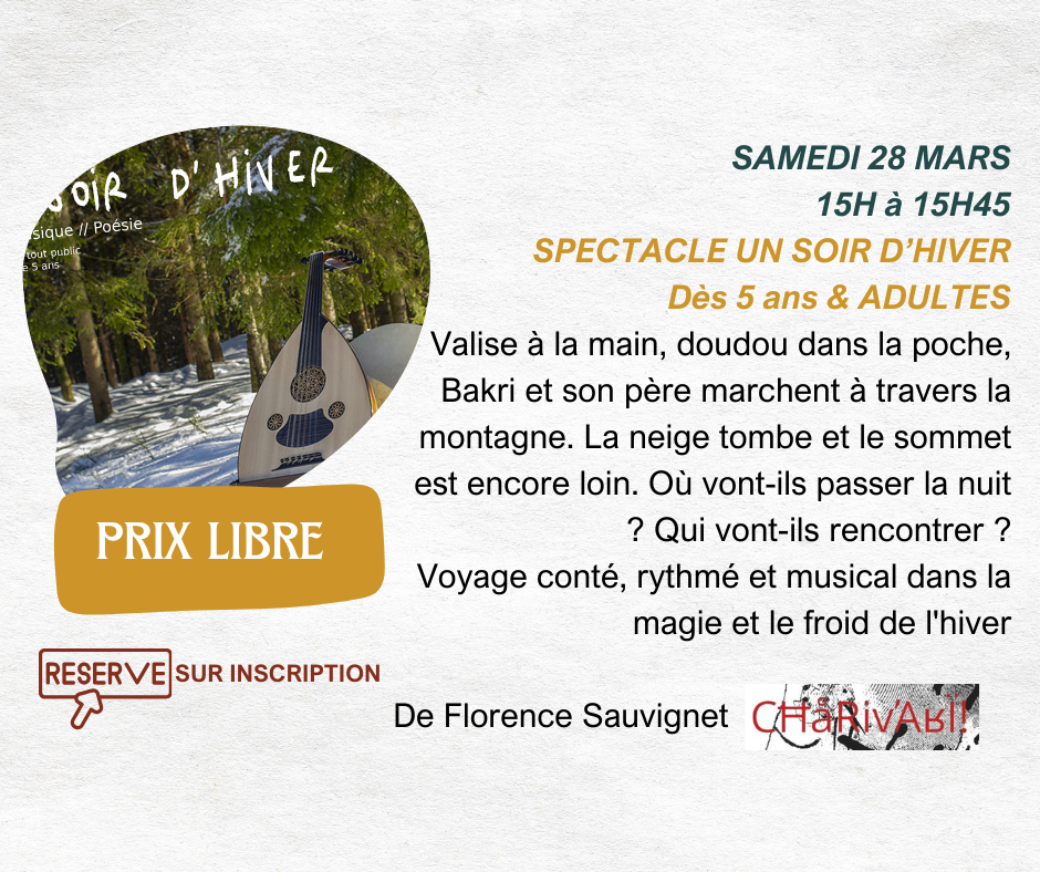 🎭Samedi de 15h à 15h45, spectacle "Un soir d'hiver" proposé par Charivari !
