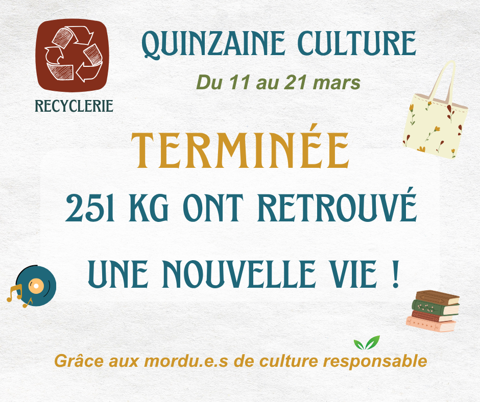 Ce sont 251 Kg de culture qui sont partis de la recyclerie, autant qui ne seront pas des déchets tout de suite, merci !