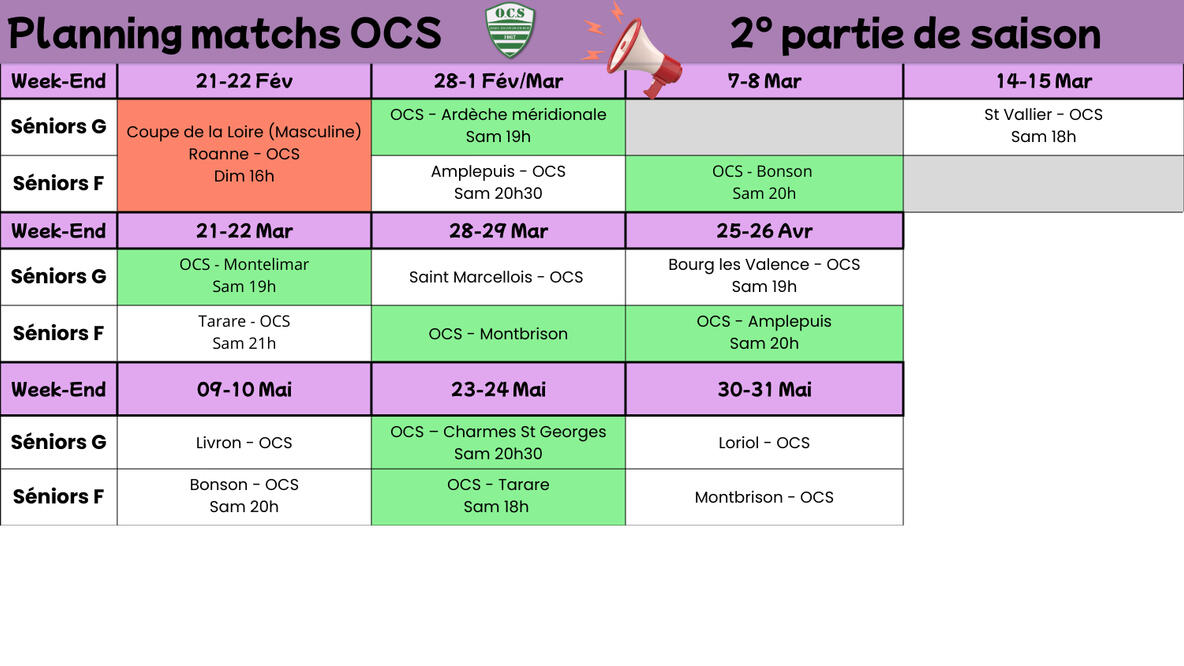 Planning matchs OCS