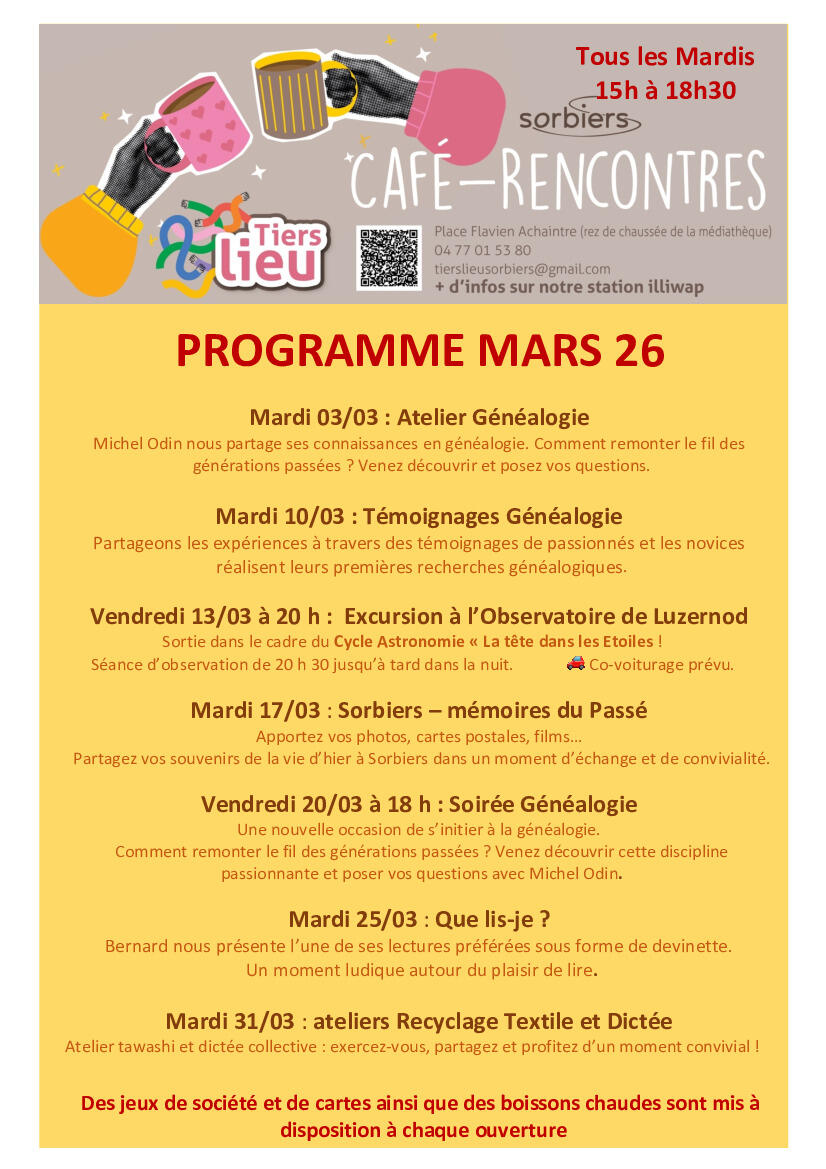Café Rencontre - Programme du mois de Mars