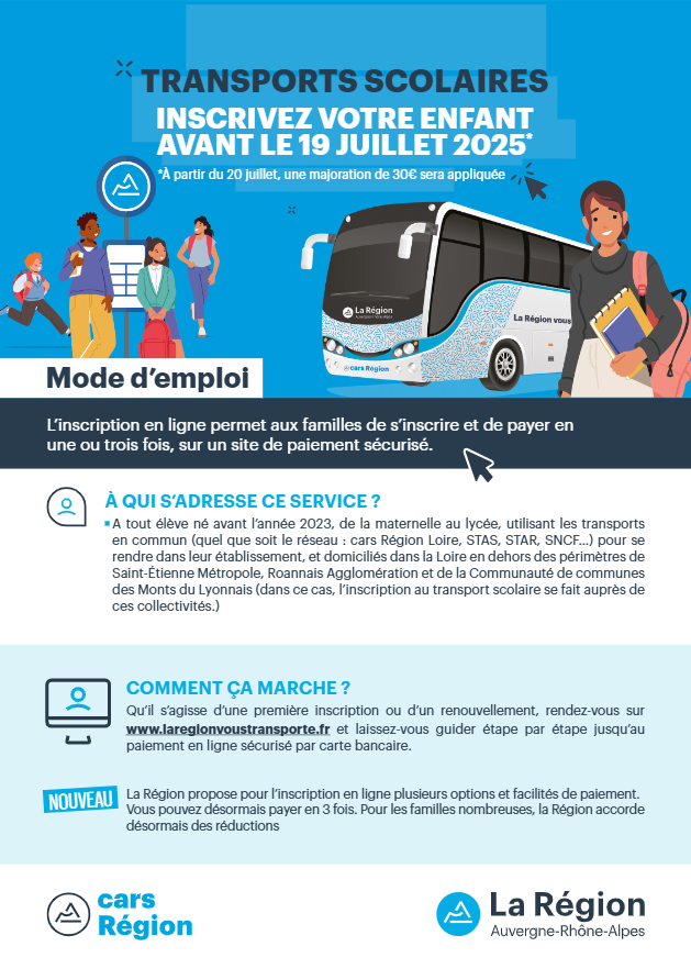 Les inscriptions en ligne Transport Scolaire 2025-2026 sont ouvertes.