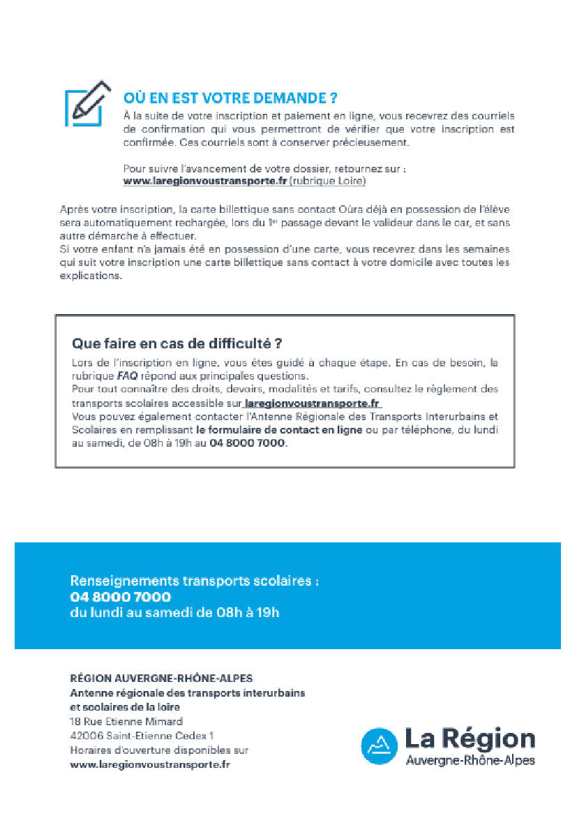 TRANSPORTS SCOLAIRES Cars Région Loire