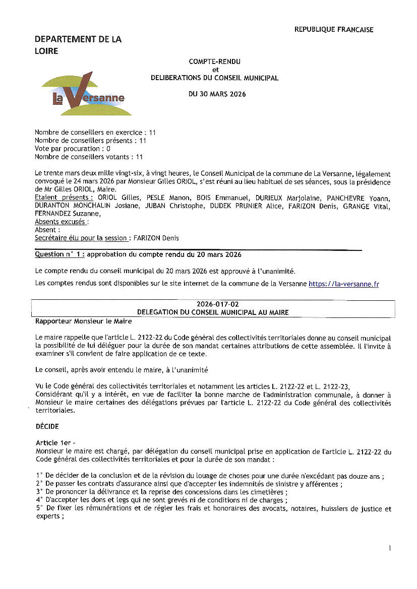 COMPTE RENDU DU CONSEIL MUNICIPAL DU 30 MARS 2026