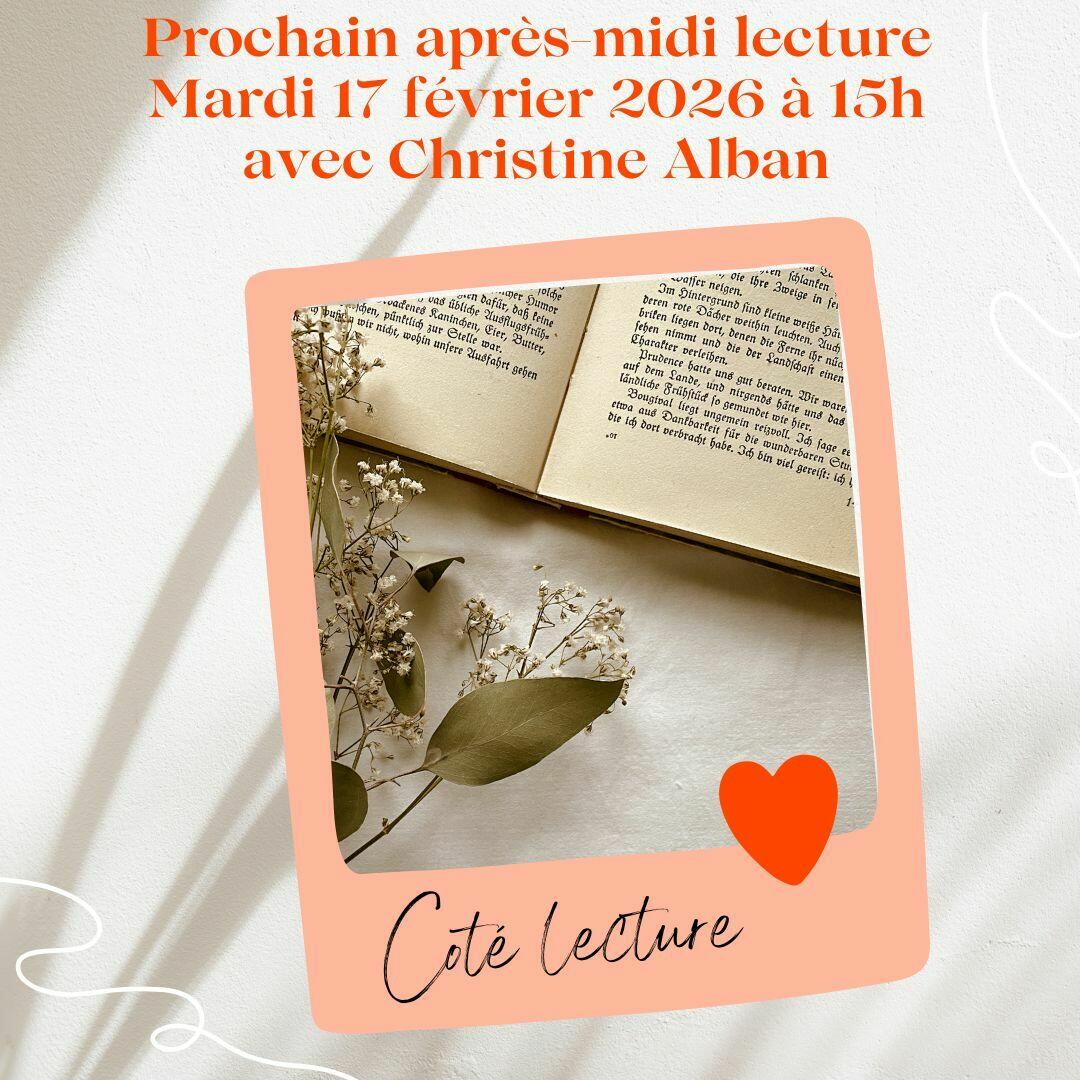 Le concept : Christine Alban lit une lecture de son choix les mardis après-midi, tous les 15 jours, de 15h à 17h, dans un esprit convivial et d’échanges autour de la lecture.