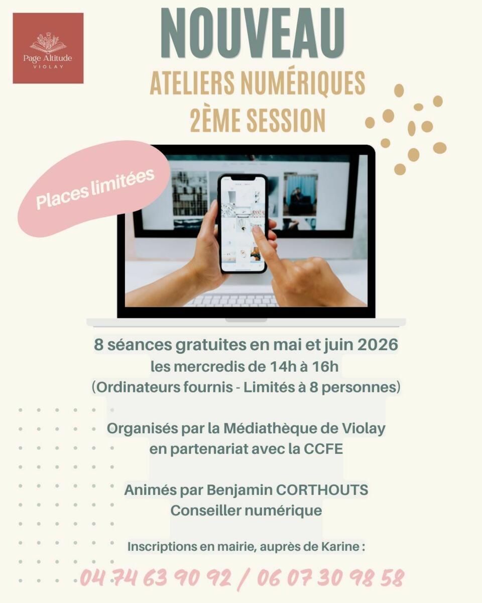 Benjamin Corthouts, conseiller numérique à la CCFE, animera deux sessions d’ateliers numériques : prendre en main un équipement informatique - naviguer sur internet - envoyer, recevoir et gérer ses e-mails, installer et utiliser des applications utiles sur son smartphone - stocker, ranger et partager ses contenus numériques - connaître l’environnement et le vocabulaire numérique - apprendre les bases du traitement de texte…
