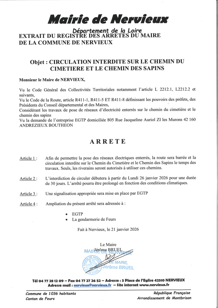 🚨ARRETE DE CIRCULATION CHEMIN DU CIMETIERE ET DES SAPINS