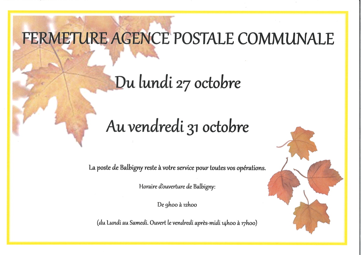📢FERMETURE AGENCE POSTALE COMMUNALE