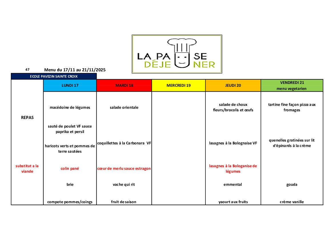 Menus Cantine Semaine 22 + Association 42 bouchons du cœur