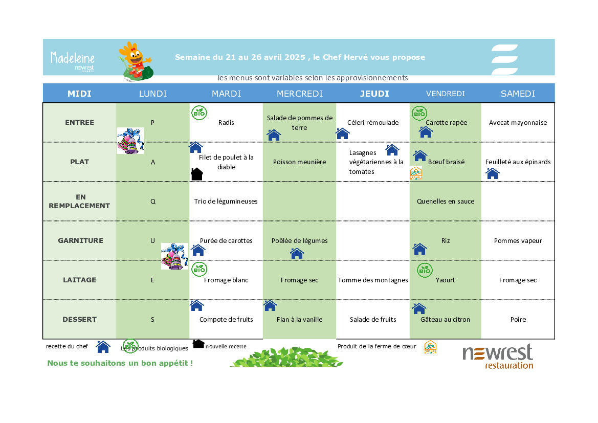 Menus du 22 au 27 décembre 2025