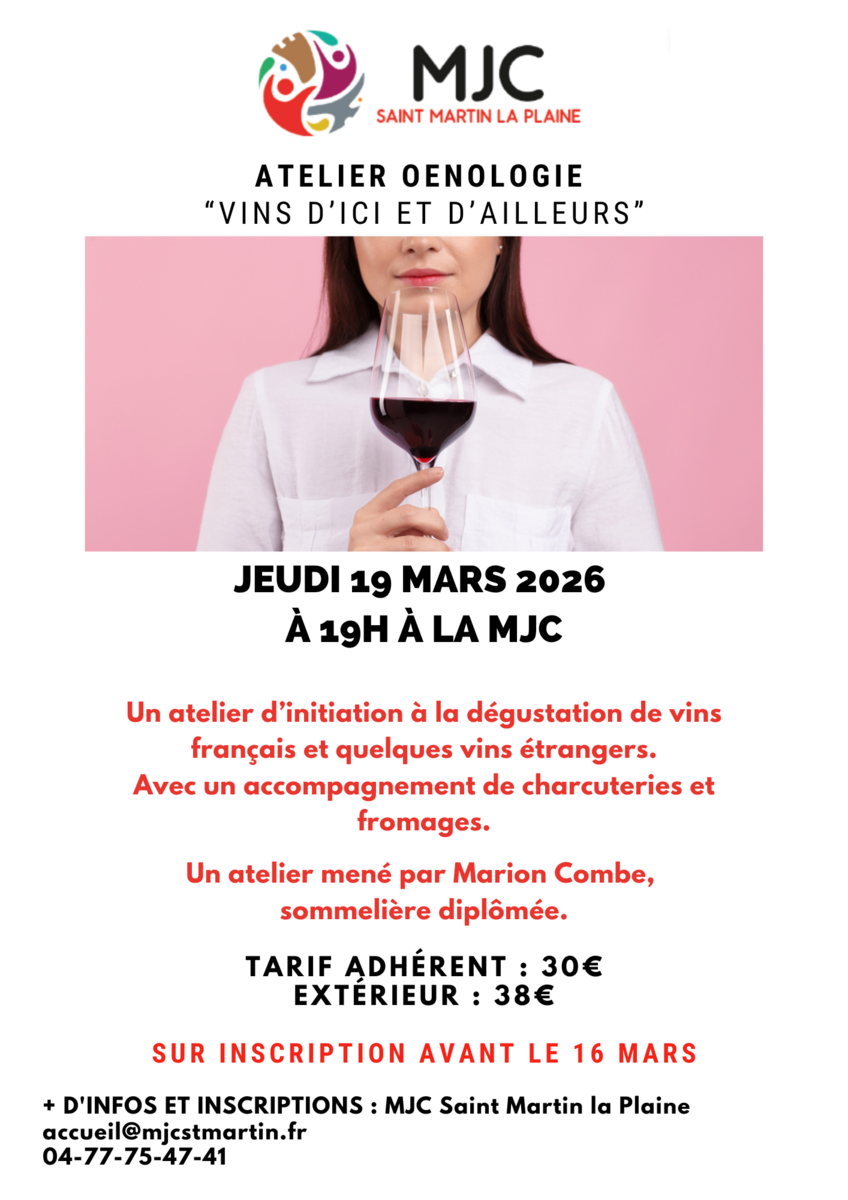 Atelier Oenologie - Jeudi 19 mars à la MJC