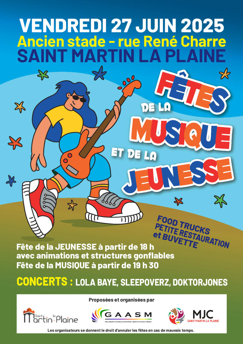 Fête de la musique et de la jeunesse 19/6/25 Le vendredi 27 juin à partir de 18h. Rdv à l'ancien stade.