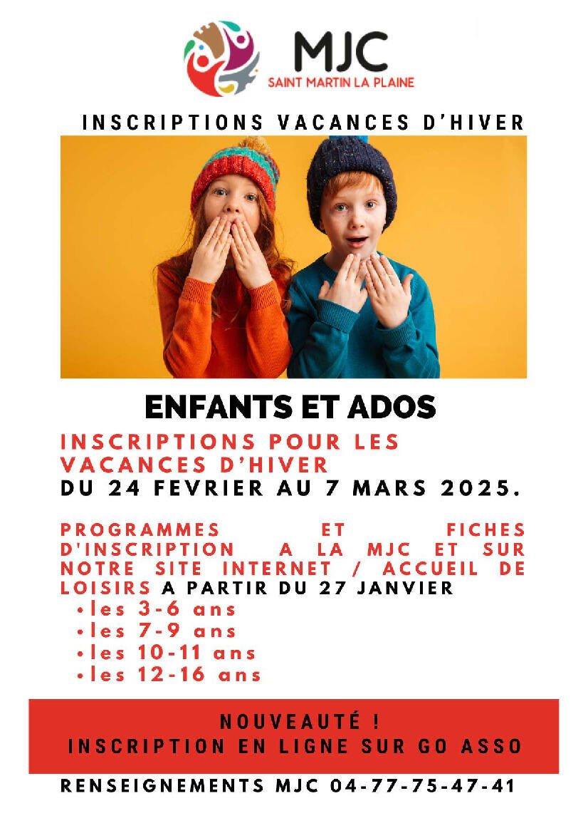 Inscriptions à la MJC sur nos horaires d'ouverture.