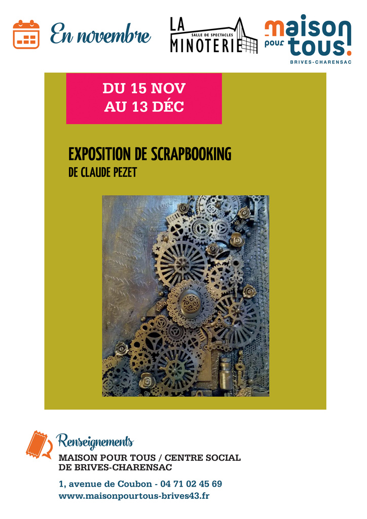 Exposition de scrapbooking 18/11/25 Du 15 novembre au 13 décembre, venez découvrir les réalisations de Claude Pezet. Entrée gratuite ✅