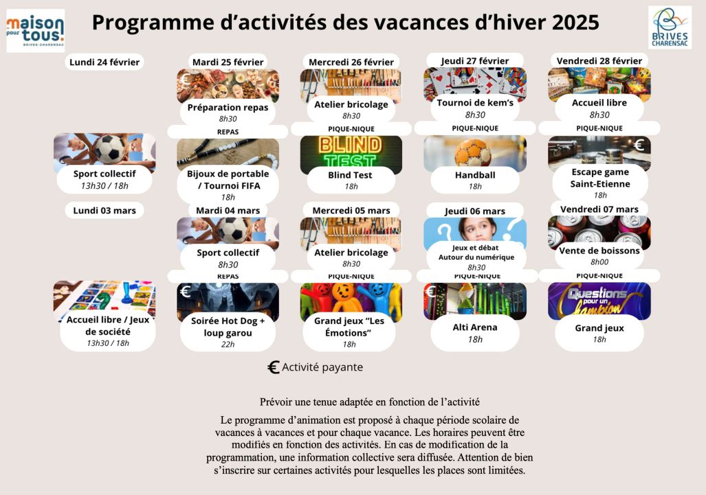 📞 Pour plus de renseignements, contacte la Maison Pour Tous de Brives-Charensac au 04 71 02 45 69.