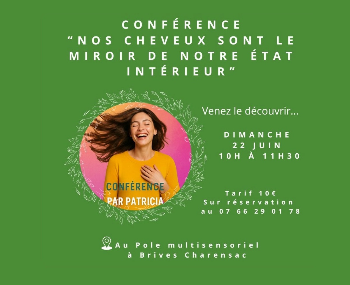 Patricia Gibaud, coiffeuse énergéticienne, vous donne rendez-vous le dimanche 22 juin à Ô 5 SENS pôle-multisensoriel pour une conférence.