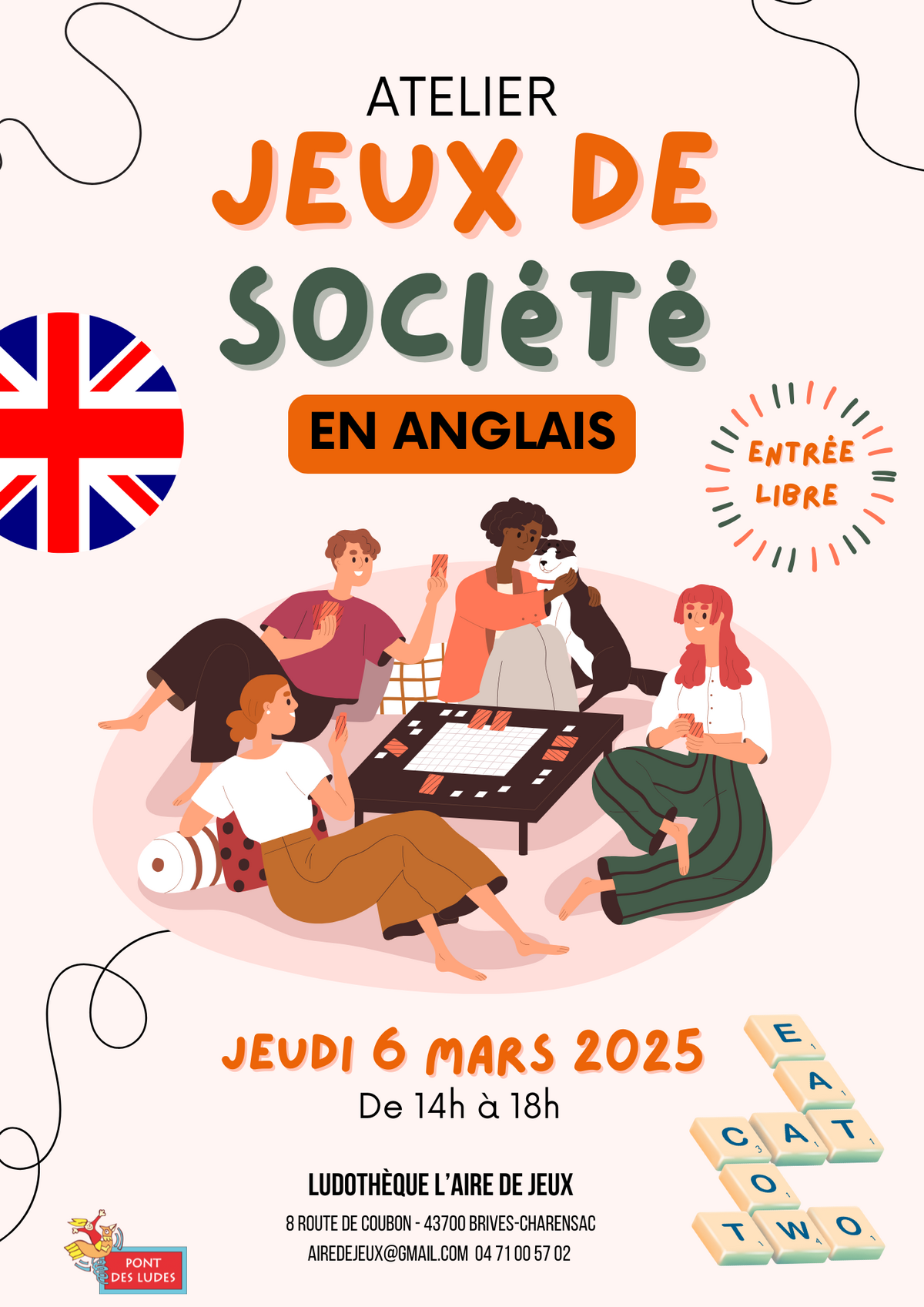 ▶ Vous aimez les jeux de société et souhaitez améliorer votre anglais tout en vous amusant ? Rendez-vous à la Ludothèque Lud'Agglo pour une session de jeux en anglais !