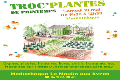 Pour la 3e année, la Médiathèque Le Moulin Aux Livres de Brives-Charensac organise son troc de plantes.