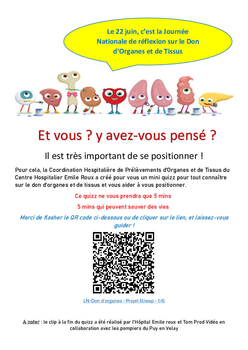 L’accès au questionnaire peut se faire par QR Code ou par lien, et se termine par un spot vidéo réalisé par Tom Prod Vidéo en collaboration avec le centre Hospitalier Emile Roux et les Sapeurs-Pompiers de la haute Loire.