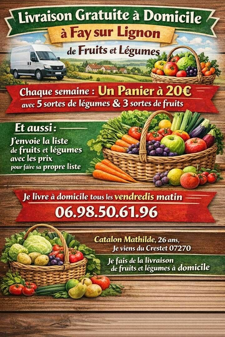 Il y a le possibilité de se faire livrer à domicile des cageot de légumes et fruit de saison de l Ardèche sur commande. Voir l affiche