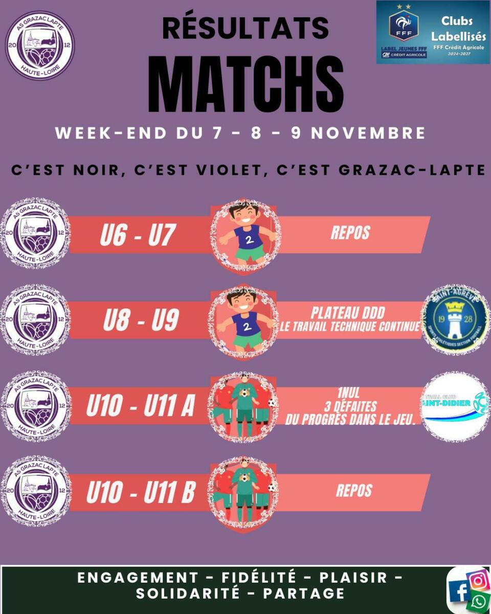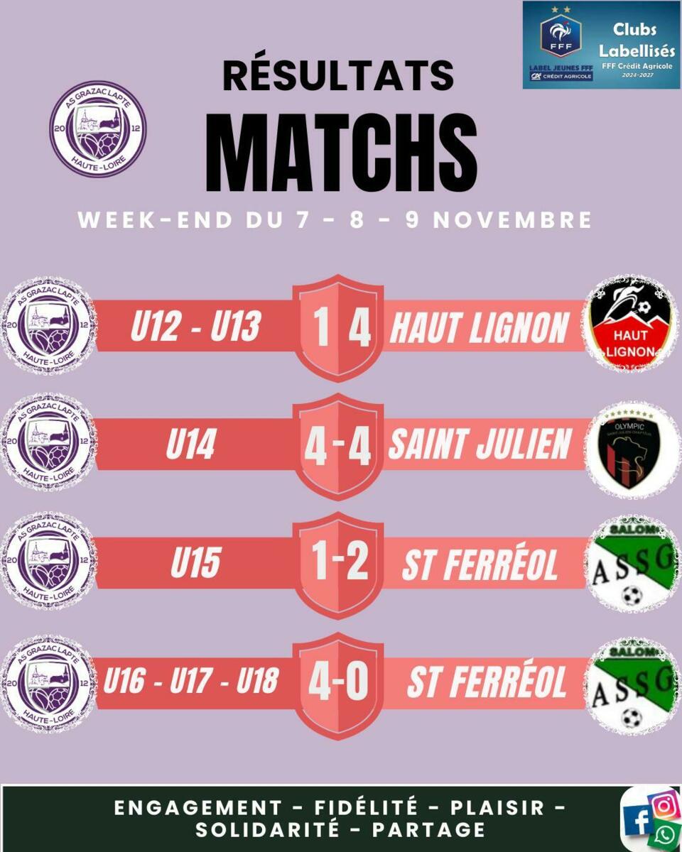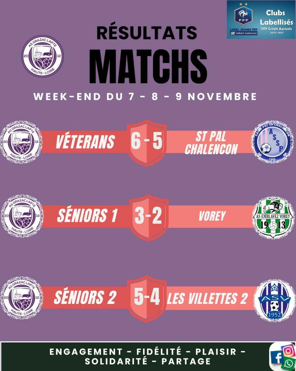 ASGL: Resultats Foot du week-end.⚽️🟣⚫️ 10/11/25 ⚽️🟣⚫️ #TeamASGL Résultats du week-end 💜🖤⚽️ Source : Mairie de Grazac