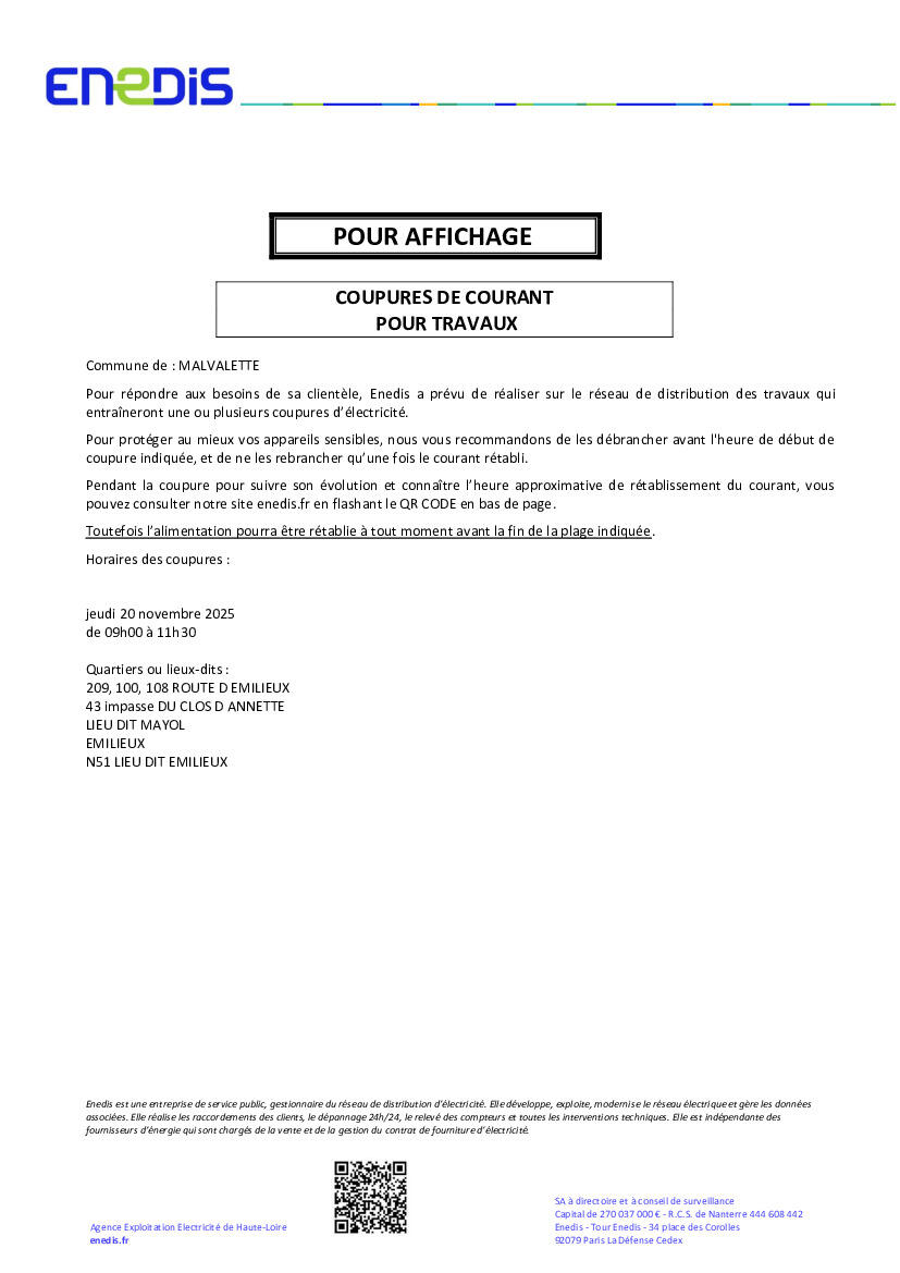 Coupure d'électricité : EMILIEUX et MAYOL