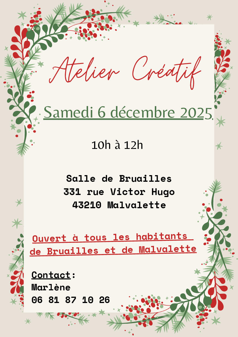 Atelier créatif à Bruailles le samedi 6 décembre