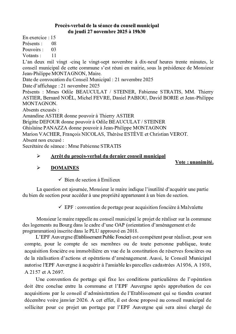 Procès verbal du conseil municipal du 27 novembre