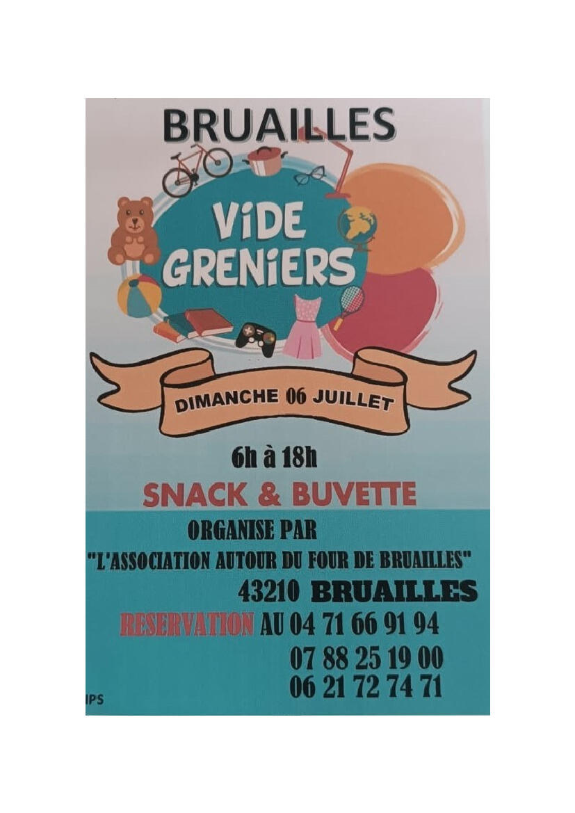 Un vide grenier est organisé par l’association « Autour du four de Bruailles » (43210 Malvalette) le 6 juillet 2025 de 6 heures à 18 heures.