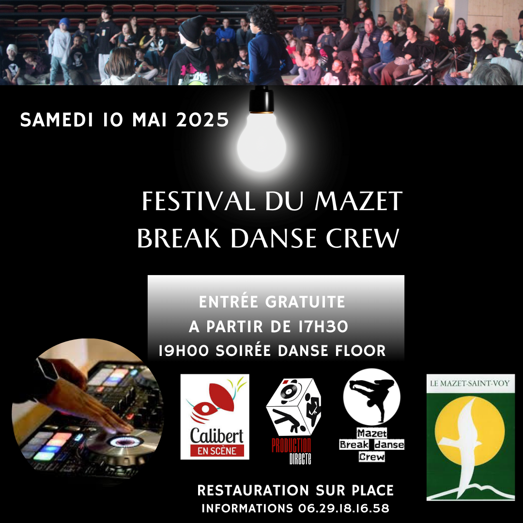 Festival MAZET BREAK DANSE CREW samedi 10 mai au Calibert