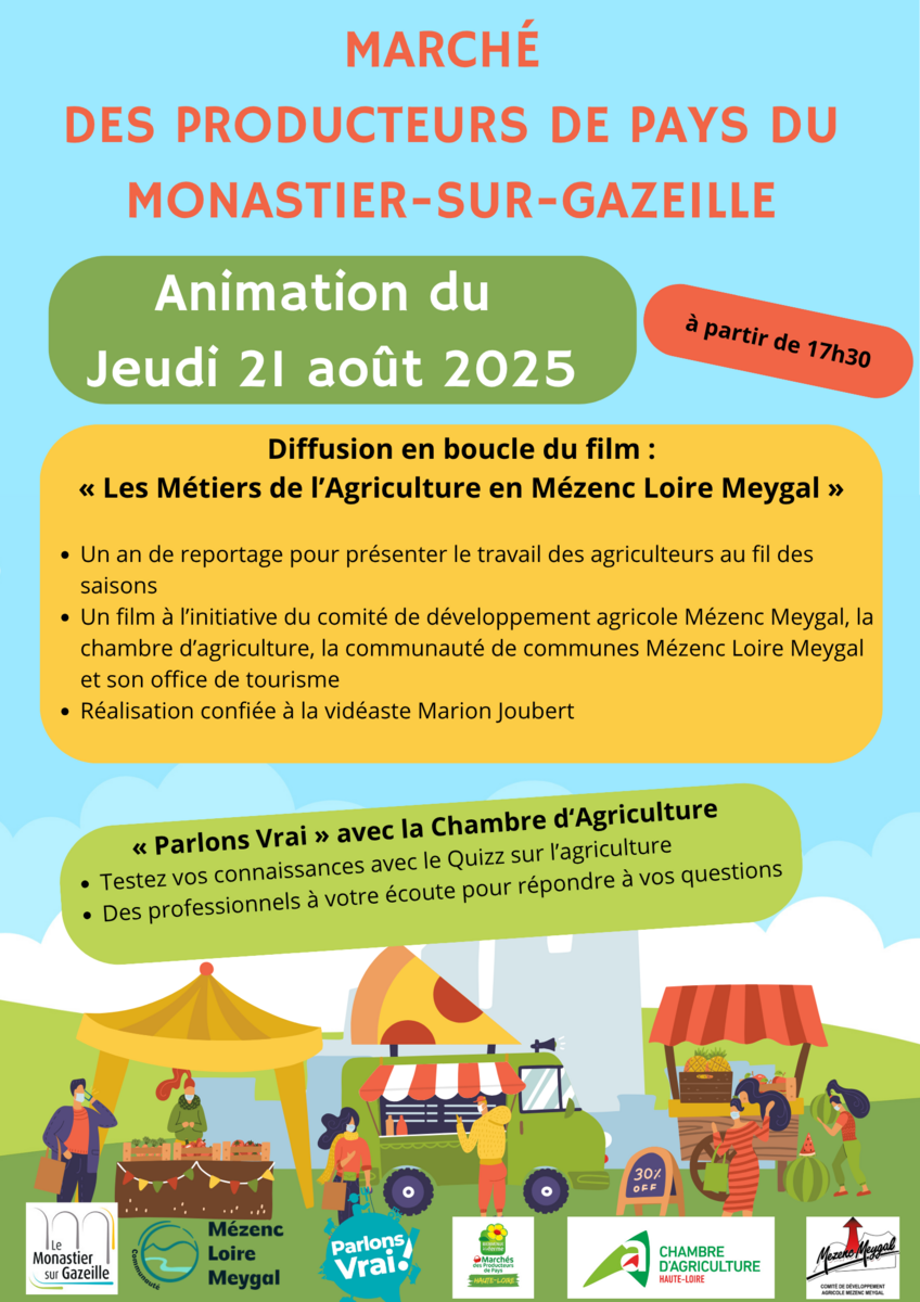 Projection en boucle à partir de 17h30 lors du marché des producteurs de pays du 21 Août au Monastier-sur-Gazeille.